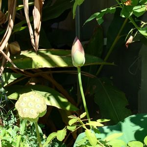 もう終わったと思っていたら茶碗蓮の蕾が出ていました、ちゃんと開いてほしいです