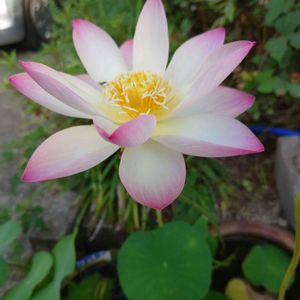 こんばんは🌆 今日、初めての白い蓮の🪷お花が開花しました🙌🙌🙌 ピンクの優しいお花とは違ってどっしりと存在感があるお花です。 ピンクと白のコラボを期待していましたがピンクは明日になりそうです。 白がきれいなうちにピンクとのコラボを楽しめますように🤗🤗