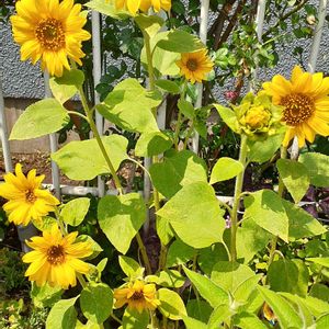 2022.5.31 曇りのち晴れ☀️ [ヒマワリ] 夏の花🌻が咲いています。 真夏のイメージ。4/3に種まきして2ヶ月足らずで咲きました。 横でアジサイが、咲いている我が家です。フフフwww