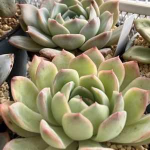 エケベリアさん半日陰の日向ぼっこ☀️かわいい3選✨上から アマビレ ヘッジホック アバンギャルド 紅葉してきているけど緑っぽい子が多い タニラー2年目まだまだです😅そろそろ-1℃予報なので室内かな これで全部ではないので大変です💦増やすのが楽しすぎます💕