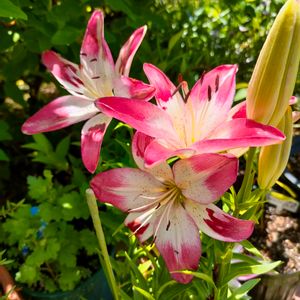 🌸スカシユリ🌸 ロリポップと言う品種かしらね? ハケではいたような模様が芸術的? 明るい花です🤩 3.4年は植え替えてないから 今年こそは植え替えないとね🤗