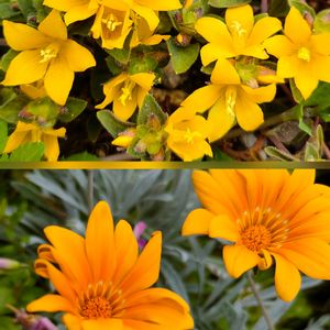 💛ビタミンカラーのお花💛 🌸リシマキア ミッドナイトサン🌸 冬中は銅葉なんですが春には青い葉が出て黄色い花が咲きます。 匍匐性あってグラウンドカバーになります。 🌸ガザニア🌸 よく見えないけどシルバーリーフなのがお気に入り。 消え絶えそうだったけど何とか生き残ったみたいで嬉しい✨
