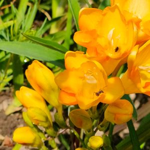 🌸フリージア🌸 安定の黄色💛 ありんこ🐜見つけたので パチリしました📸 白い花や赤い花もあったのになぁ! やはり黄色が丈夫なんだね😊