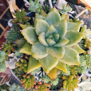 エケベリア・トラムソ、エケベリア・モルゲインxコーデュロイ ラブリーローズと合わせて3鉢は去年の5月にお迎えしたもの。 トラムソの肌が綺麗…。 まだ植え替えはいいかな?