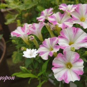 連投失礼します🤗 ペチュニアのニーナさん🌼 一緒に寄せているシレネのスターリードリームさんとお話し中のところをパシャリ📸 我が家のペチュニアさん、バッサリ✂️から3週間😉 みんな復活してきました(⁎˃ᴗ˂⁎)ワーイ♪