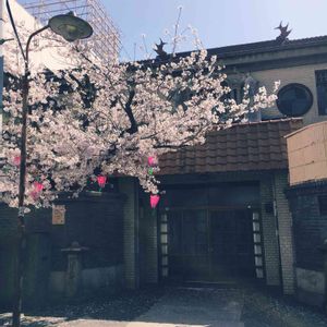 昭和感溢れるお風呂屋さんの前に桜。行くに決定。