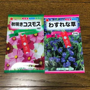 朝顔も無事に咲きそうなので、タネから育てる事をもう少し頑張ってみよう☺️ 秋にかけて定番なのは、やっぱりコスモスかな❓そして紫好きの私はわすれな草を買ってきましたよ😄 今日も仕事なので、帰ってきたら撒こうかな。 ちなみに、よく行くJAさんの野菜と花と苗の直売所の名前は朝どれふぁーみ。 購入時のテープ貼ってありますね😄