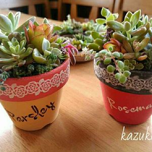 これは、ステンシルしたリメ鉢に、寄せてみました。