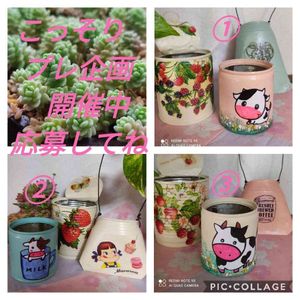 バラと夢CLUB3周年㊗️おめでとうございます🎉🎉🎉 一斉プレ企画、私も初参加させて頂きます(⁎ᴗ͈ˬᴗ͈⁎)🍀*゜ 応募条件 フォロワー様(これからの方もOKです) 日本在住の方 素人の作品とご理解頂ける方 連絡がとれる方 リメ缶、リメ鉢の3個セットになります。 希望の番号を選んで応募して下さいね(⁎ᴗ͈ˬᴗ͈⁎) 💕︎ 締め切りは21日の21時までです。 よろしくお願いしま〜す。