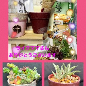 ライクママさんから昨日 プレ企画のプレゼント🎁が 届きました。 可愛いリメ鉢と珍しい多肉ちゃんが たくさん入っていました。 アロエ 春萌 七宝樹錦 セダム アトランティス など10種類ほどの多肉 お庭で採れた植物のスワッグ お菓子 🐨が大好きなニョロニョロ😍の ワイヤーピックも入っていました。 G Sのpicに写っているpicを見て欲しい欲しい と願っていたら 願いが通じました。 クリスマスプレゼントをもらった気分です。 繋がりに感謝です。 心のこもった手作りのプレゼント ありがとうございました😊