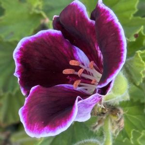 Pelagonium x domesticum/Pelagonium. Geraniaceae. Geraniales. Magnoliopsida. Tracheophyta Commonly called/Regal Geranium. Martha Washington geraniums Native to/South Africa. Australia. Symbolism/Friendship. Domestication *Genus of about 230 species *They typically grow to 3’in tall woody stems. *Genus name comes from the Greek word ‘pelargos’ meaning “a stork”. Photographed 1/19 9:52am 2025 Posted 1/20(Monday) 11:46am 2925