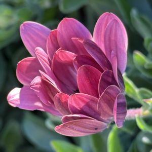 Osteospermum fruticosum/Osteospermum. Asteraceae. Asterales. Magnoliopsida. Tracheophyta Commonly called/Trailing African daisy. Shrubby daisybush Native to/South Africa Symbolism/Peace. Unity. Fun *Genus of about 70 species *Mid green leaves, to 4in(10cm)long, Solitary flowerheads, 2 1/2-3in(6-8cm)across *The genus name Osteospermum comes from the Greek ‘Osteo’ means “bone”, and ‘sperma’ means “seed”, in reference to the hard seeds. Photographed 1/31 9:09am 2025 Posted 2/3(Monday) 11:37am 2024