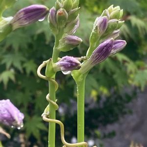 長いものに巻かれろ⁉️ ギボウシの蕾が、ツル性の雑草に 巻かれてしまった⚠️ 首 しまっちゃうヤン💦 ゴメンゴメン✂️