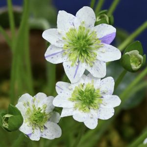 絞り咲きの桔梗のような《雪割草》🤍💚💜 茎は緑で、ツルツルです✨