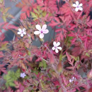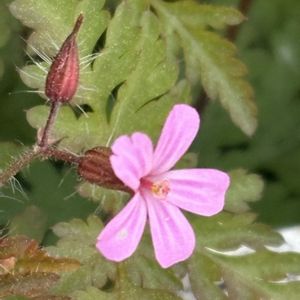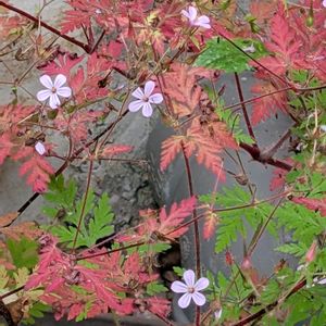 散歩中に撮影しました。 ヒメフウロです。 小さな桃色の花と葉の色がとても綺麗です。