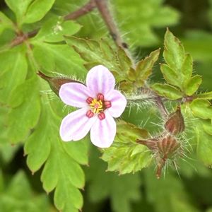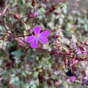 隣家の日陰に、ひっそりと咲いていました。花は1センチ弱。検索するとヒメフウロとでます。初めて聞く名前。可憐がピッタリ。もしかしたら違うかも。教えていただけるとうれしいです。
