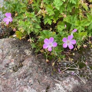 伊吹山のフウロソウ科の花 1️⃣ミツバフウロ(三葉風露) 葉が3裂しています 西登山道の下の方で 2️⃣3️⃣ヒメフウロ(姫風露) 本州や四国の石灰岩地に自生する 山頂付近の岩場に生えていました 葉が紅葉していて綺麗です 4️⃣ハクサンフウロ(白山風露) 葉はアメリカフウロの様な切れ込みの多い葉 5️⃣ゲンノショウコ(現の証拠) 花びらの先端が可愛い花が咲いていました この子もいつか、イブキゲンノショウコになるのかしら? 🅿️付近で 花弁の先が3裂するイブキフウロを探していましたが、見つけられなくて残念でした😩 2025.8/24