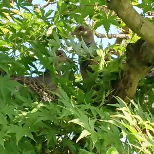 9月下旬に、庭の木にきじばと(山鳩)が巣を作り、2週間以上つがいで交代で巣を守ってました。 台風や大雨にも負けず、おととい雛の姿が確認できて、親鳥が餌を与えている姿も何回も見たのですが、今日の午後巣に親鳥の姿が見られなかったので、脚立に乗って巣を覗いたら空っぽでに。 まだ巣立ちするには早いので、カラスか、たまに夜出るハクビシンにやられてしまったのか。 3週間近く見守ってきたので、ショックです😣 親鳥も近所の家のアンテナにずっととまってます。我が子を探しているのかな😢