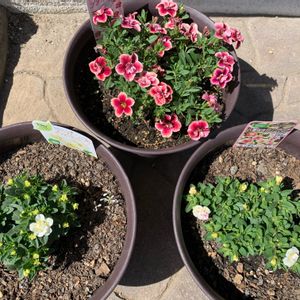 www プランター寄せ植えをしようとジニアの開花を待っていたのですが、なかなか咲かなくて😅 待機苗の根が張ってきたので、とりあえずww 種まきマリーゴールドバニラとカリブラコア ピンクレモネード😊