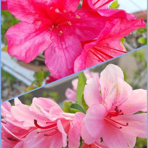 💕遅咲きのツツジ💕 1本の木です◝(⑅•ᴗ•⑅)◜ 向きが違う方向から撮ると 違って見えます 咲き始めました 昨年の手入れが悪いと 花の付き方が🌸 バラパラです(๑•̀ㅁ•́ฅ✨ アザレアも庭のアチコチで 白い花を咲かせ始めました ピンクワールドへようこそ