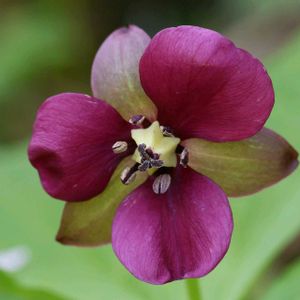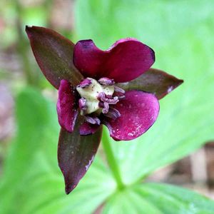 コジマエンレイソウ 🌱シュロソウ科 エンレイソウ属 ✽海岸近くの林下に多く、花弁は0〜3個と個体差あり ✽子房はふつう緑色系だが黒い型もある ・名前のコジマは道南の渡島小島に由来する 花弁が1個のは何度か見てましたが、3個は初めて見ました❀