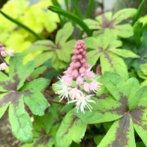 我が家の宿根草。 ティアレラ「スプリングシンフォニー(多分)」 ほとんど株は大きくならないけど、年々花の数が増えるので、小さいお庭で重宝してます。