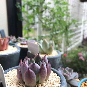 ついに買ってしまった〜😆 リエール多肉フェスティバルへ行ってきました。 高級品種には手を出せませんでしたが… かわいらしい苗をいくつか購入できて大大大満足! 片道2時間、往復4時間電車に揺られ、小さな袋をぶら下げて帰ってきたわたしを見て 「え!あんな遠くまで出かけて買ってきたのそれだけ?!」と夫と息子たちにびっくりされ。 もっとたんまり買ってきても良かったというのか……? 家族に遠慮して厳選したのに(ㆀ˘・з・˘) それにしても可愛い苗たち…♡ この美しい姿をキープできるように、大事に育てよう꒰♡ ´͈ω`͈♡꒱