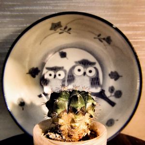 今日は、毎月恒例‼️ きゅうちゃんさん主催のフクロウ祭り 🏮∩(´∀`∩) 🏮ワッショイ 自身にとって、休日に重なるフクロウ祭りはとても貴重(ΦωΦ)キラ~ン✨ 今日はもう一枚picさせて頂きます( ̄▽ ̄)‼︎ だんだん木質化? してきたウチに来て今年で3年目の麗蛇丸。 フクロウを🌵の上に停まらせ… 今回は美濃焼のお茶碗で参加させて頂きます😊