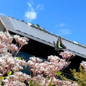 💙♡ͥ︎ ♡ͦ︎ ♡ͮ︎ ♡ͤ︎空と植物♡ͥ︎ ♡ͦ︎ ♡ͮ︎ ♡ͤ︎🦋 (〃 ´ ▽︎ ` )ノおはようございます♪ 🦋三連休中に梅小路公園の日本庭園〜『朱雀の庭』の〈藤袴と和の花展〉へてくてく👟 🦋①アサギマダラに出逢えましたよ♪ 🦋②出逢えた蝶々さんをコラージュ♪ 写真右上→セセリチョウෆ̈ 左上→ツマグロヒョウモンチョウෆ̈ 中央→アサギマダラෆ̈ 右→キタテハෆ̈ 左→アカタテハෆ̈ 下→ツマグロヒョウモンチョウෆ̈ 🦋沢山の蝶々さんと出逢えて ヾ(≧∇≦*)/ヨカッタ〜♡