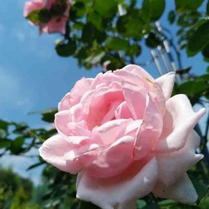 梅雨が明けて夏本番がやって来ましたね🐱 つるバラの羽衣が元気に咲いています🌹 スマホのカメラは、太陽ですぐ熱くなって使えなくなるので、何枚も撮り直し出来ません😣