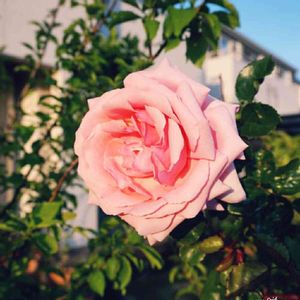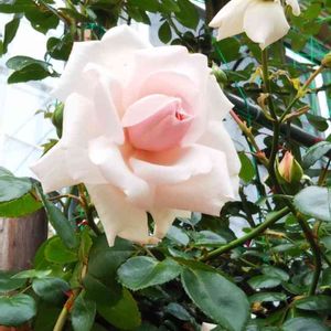 つるバラ 羽衣🌹✨ 自転車小屋に誘引した羽衣さんが開花しました💕(⁎˃ᴗ˂⁎) 北側なので蕾も少なめですが 可憐なピンクがカワユイです◝(⑅•ᴗ•⑅)◜..°♡