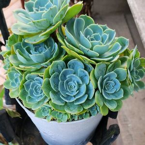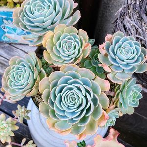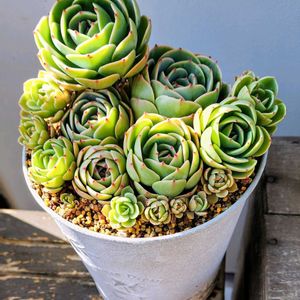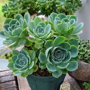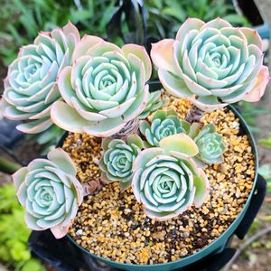 七福神ꕤ*。゚ 冬には可愛い色になってくれるけど今の色も元気ハツラツで好きです💓 根元のチビっ子たちも写真とりづらく写してないけど元気に育ってます(^_^)v 今日は風が強く背の高い鉢が倒れないか心配💦