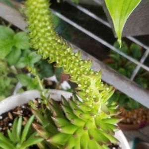 ツメレンゲ ちょっとくねくねしちゃいましたが、白いつぼみが出来てきました。