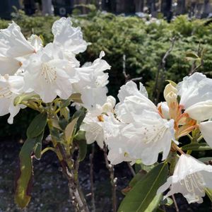 今日のお花 🌱シャクナゲ ツツジ科 ツツジ属 咲き始めた頃の石楠花 ピンク色の蕾から白色の花になるグラデーションが綺麗でした!🎶