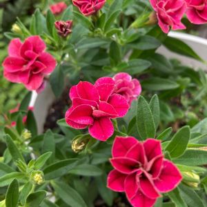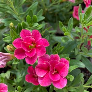毎年お迎えする、カリブラコア。今年はPWの新品種スーパーベルダブルチェリーリップル🍒 梅雨入りの時に切り戻し、またお花が咲き始めました♪