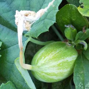 カラスウリ 雌花の花後と青い実 これから赤くなる ーーーーーーー とうとう雌花の開花を見ることができなかった😅 花の柄元が膨らんでいるのが雌花♀️ でも写真を撮っていると、 いろんな人に話しかけられて楽しい😄