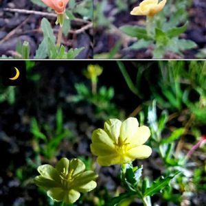 よく見る雑草🌿 夜咲く一日花🌛 コマツヨイグサ(小待宵草) 早朝5時半、もう萎れてオレンジ色になった 夜11時頃満開😁 ーーーーーーーー 特徴 花径1.5cm~2cmと小さく、葉に切れ込みがあり、茎は地面をはうように広がり、萎れた花がらはオレンジ色🧡になる。