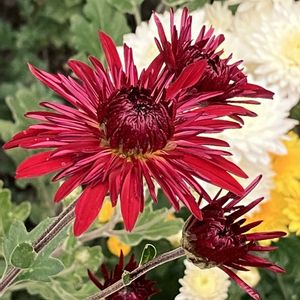 師走の聞香会の入り口に飾られていた、クリスマスカラーを想わせる赤い「スプレーマム」でおはようございます♥️✨ 歓談の茶会のお時間に頂いた今月の茶菓は、先生が京都よりその日の朝購入して新幹線でお運び下さった、老舗お蕎麦屋さんの本家尾張屋本店さんの銘菓・蕎麦餅でしたが、年明け1/11をもって長期休業に入り、創業560年の歴史に幕を下ろすことを知り、京都へ遊びに行く際に何度も訪れたことのあるほっこりする好きなお店の一つでしたので、残念なお知らせでした😢🍵🍡✨ https://honke-owariya.co.jp/stories/sobamochi-matcha-ame/ "スプレーマム"は、元々"マム(洋菊)"として中国が原産とされていたものが、蕾を摘まずに枝分かれに花を多数咲かせるように新たに改良されたアメリカ生まれの品種のキク科の多年草🇺🇸 花持ちが良く、バラエティに富んだ花色・花形があるため、季節ごとに様々なシーンでアレンジメントに楽しめて便利な花材と言えますね😊 "短日植物"でもある為、日照時間が短くならないと花が咲かないという性質もあると、新たに知りました☀️⏰❄️ ー花言葉は、「愛情」、「恋の勝利」…他。