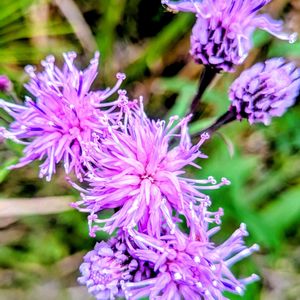 ヒメヒゴタイ キク科トウヒレン属の2年草 4年ぶりに一株だけ見つけました ①②この子の魅力は何と言っても総苞片の波打つような付属体 ③一株が枝分かれして3本立 もう消滅してしまったのかなと諦めていた。 前に見た場所とは50m離れ、ススキの陰に隠れて咲いている。 斜面、乾燥したザラザラの地質 絶滅危惧種Ⅱ類