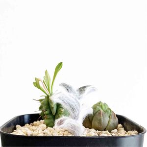 お友達からもらった3個をルームシェアさせてます。 右奥のハオルシアだけまだ発根せずに萎んできてます…もう一度お尻をカットして発根を促したいと思います。 手前の白絹姫は1枚葉が増えました。