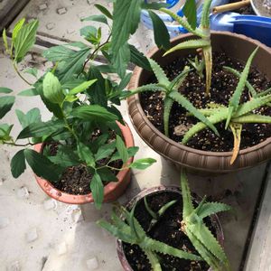 キダチアロエ♡ 徒長してたのをいただいて、挿し木しました。上手く根が生えるか心配ですが(^^;; もう一つは小手鞠、苗木の配布でいただいてきました。