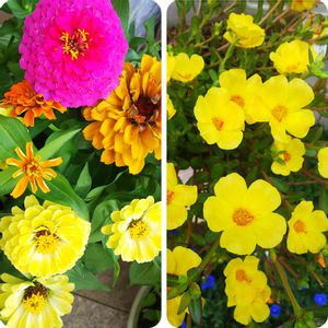 今日も暑い日でした😃💦 ハンギングで可愛いポーチュラカ🏵️💛 一つで何色も楽しめるジニア 🌼🌻🏵️ 元気になれるお花です😃⤴️ 🏷️元気いっぱいビタミンカラー 🏷️月曜日にビタミンカラー 参加します💛☺️✨