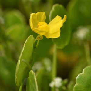 「ウトリクラリア・レニフォルミス」 タヌキモ科 土の中に捕虫嚢を付けて地下茎を伸ばし微生物を捕らえる食虫植物 咲くやこの花館高山植物室