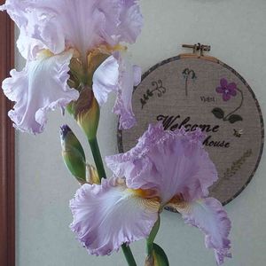 ジャーマンアイリスが今年もたくさん咲きだしたので部屋でも楽しんで♡*.+゜ 優しい薄紫色と花びらの縁のフリルに見とれてしまいます( *´╰╯` )♡