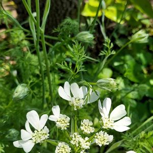 オルレアが開き始めました*✲゚* わが家のニューフェイス🤍清楚な風情に癒されます 去年GS友ちゃんに種をいただいてハナミズキの下に直撒きしました🎵 すぐ隣でニゲラの蕾たちも待機中♡ こちらも楽しみ~💙 🏷️白い水曜日♡に参加します🍀