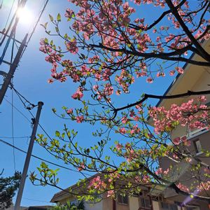 薄紅色の〜可愛い君のね〜♪ 憧れのハナミズキ♡ 冬に苗木でやって来てくれた。。。 咲いたよ〜泣けちゃう〜 まだまだお空が遠いね〜 低い景色でごめんね。 う〜すべにいろの〜 笑モウイイヨ〜