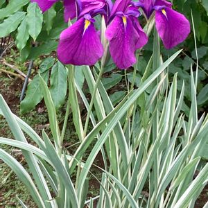 2年前?かな 中之条ガーデンズで買った 葉っぱが斑入りのハナショウブ 今年も無事咲きました♪♪♪ ムラサキ色が魅力的でしょ💜💜💜
