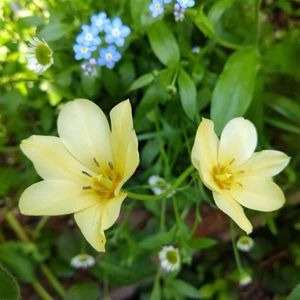 毎年最後に咲く原種チューリップ バタリニー ブライトジェム 忘れな草、咲き始めたエリゲロンと一緒に✨ この感じ、好きです🌿