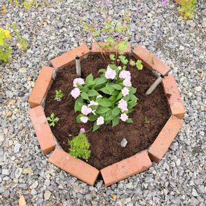【1枚目】 GWは暇だったので花壇をDIYしました😸 レンガをインスタントセメントで固めましたよ✨👍 この小さな丸い花壇は以前にも作ったことがあるのですが、鉢みたいに寄せ植え風にしたり、便利です😘 【2枚目】 植えたのはアジサイ「伊予獅子てまり」 花が3センチぐらいでカワイイ💕 丸花壇はセメント使ったばかりだから、土がアルカリ性に傾いてるはず! だから、花色がもっと濃いピンクになるんじゃないかな?😙 【3・4枚目】 花壇作りに使ったインスタントセメントが余ったので、 以前並べるだけで作った花壇も固めて強化しておきました💪 インスタントセメントお手軽でおすすめですよ〜😉 【5枚目】 お勤め品で購入したストロベリーホイップが回復してきました! つぼみがたくさん🌸🍓 でも、「趣味の園芸」によると、あと半月ぐらいで切り戻ししなくちゃいけない時期だから、半月以内にこれが全部咲いてくれるかなぁ?ってところ💦