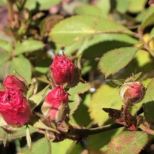 今日の花のバラ 12月に一番房になって色が濃い時の🌸 葉っぱは虫にかじられまくってるけど💦